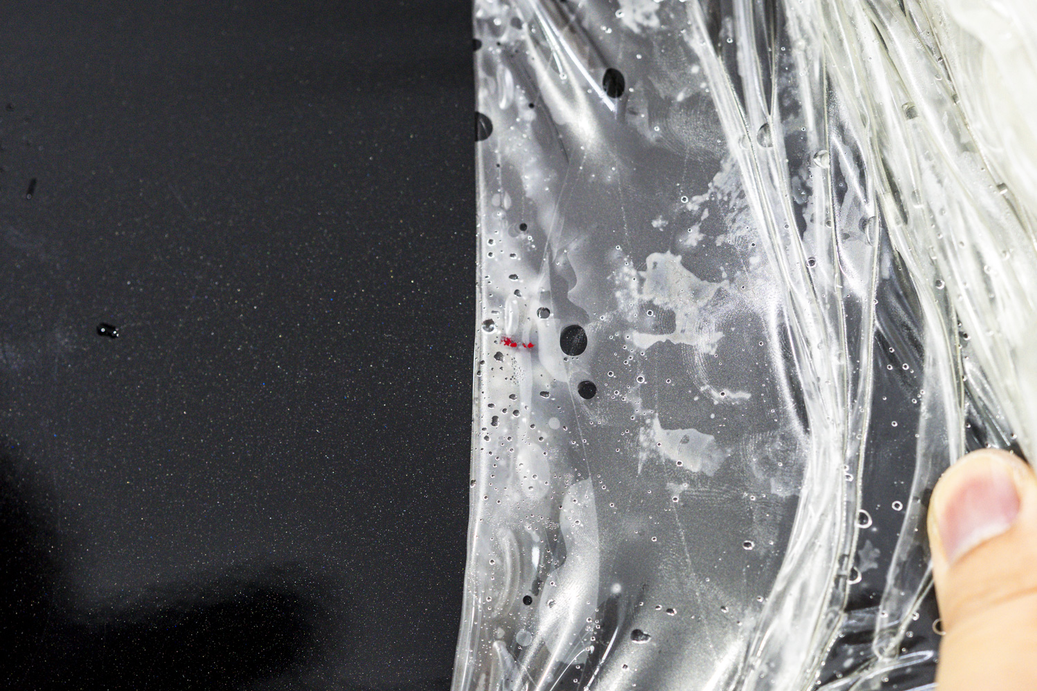 PPFの貼り替えをご希望ということで、再度当店にご入庫頂きましたが、ぶつかったドアの相手方の赤い塗装が食い込んでいました。。。↓